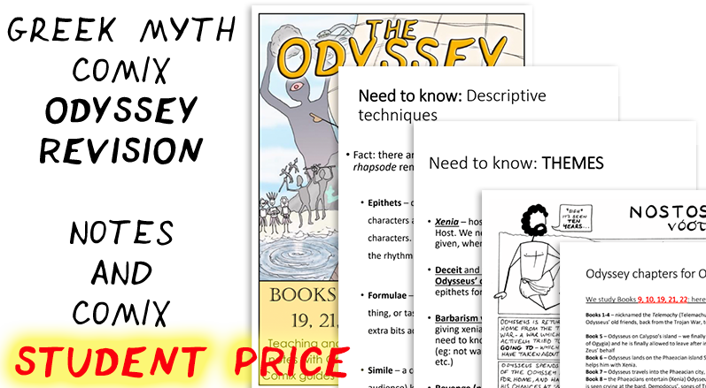 Greek Myth Comix STUDENT Revision notes for Odyssey Books 9, 10, 19, 21 OCR GCSE
