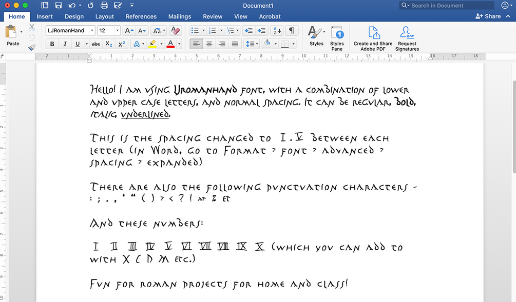 • Use the LJRomanHand font in personal projects you will share widely, or commercial projects.